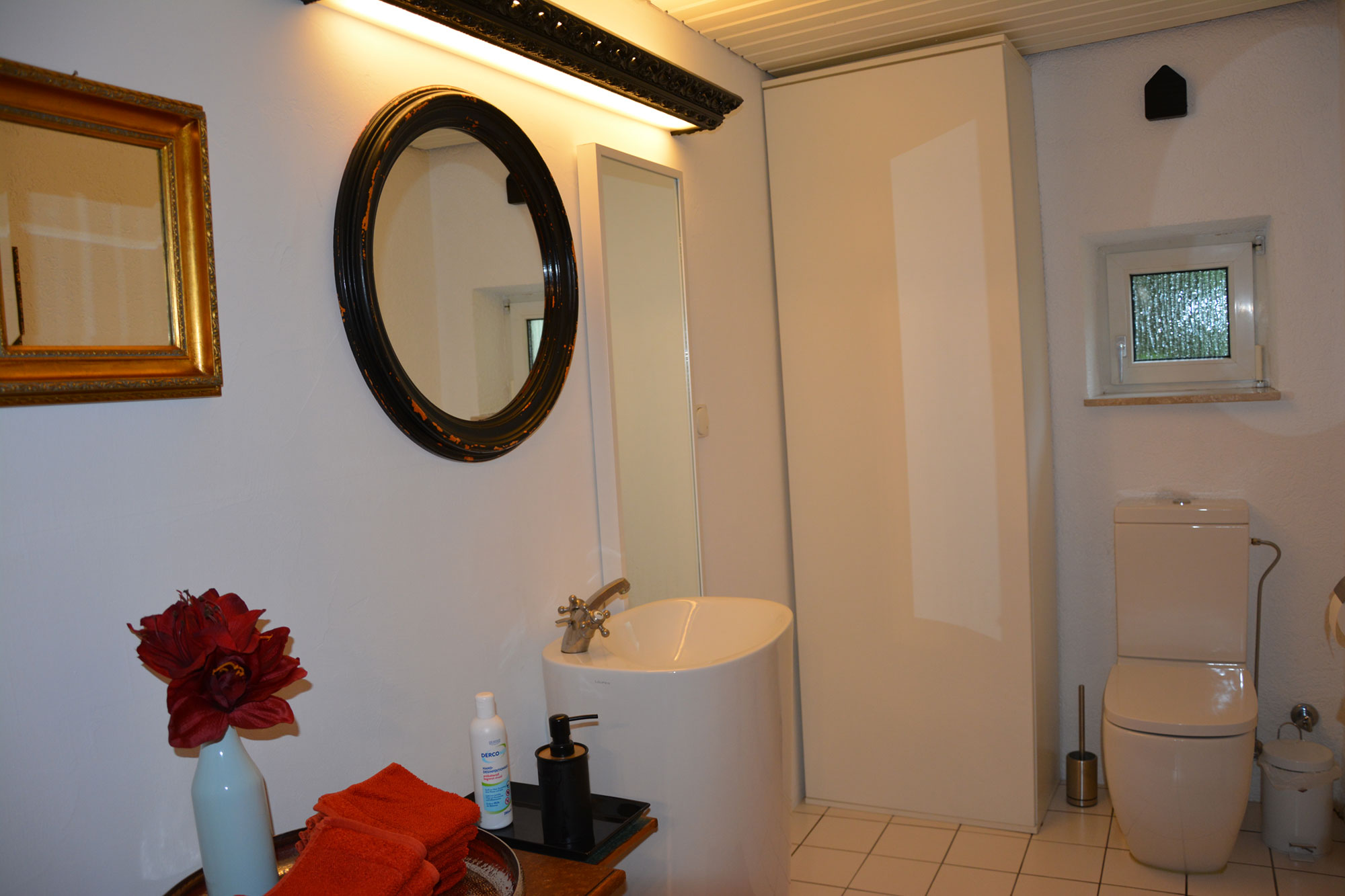 Das Haus hat ein großes Tageslichtbad mit geräumiger Regendusche und ein separates Gäste-WC.