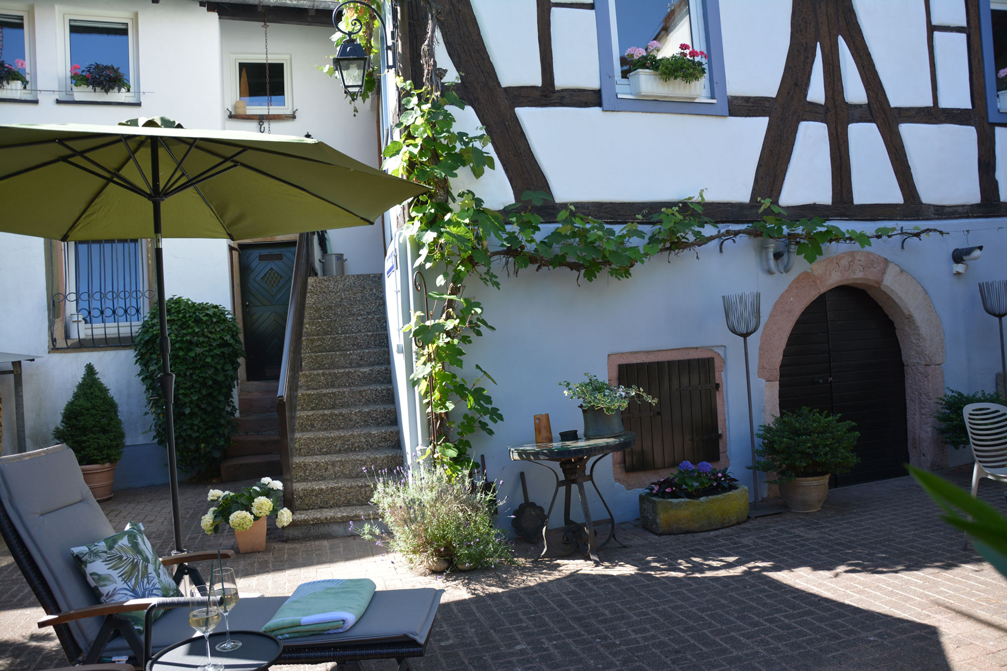 Die Benutzung des mediterran gestalteten Innenhofes sowie des Wintergartens mit unterschiedlichen Sitzebenen ist inklusive.