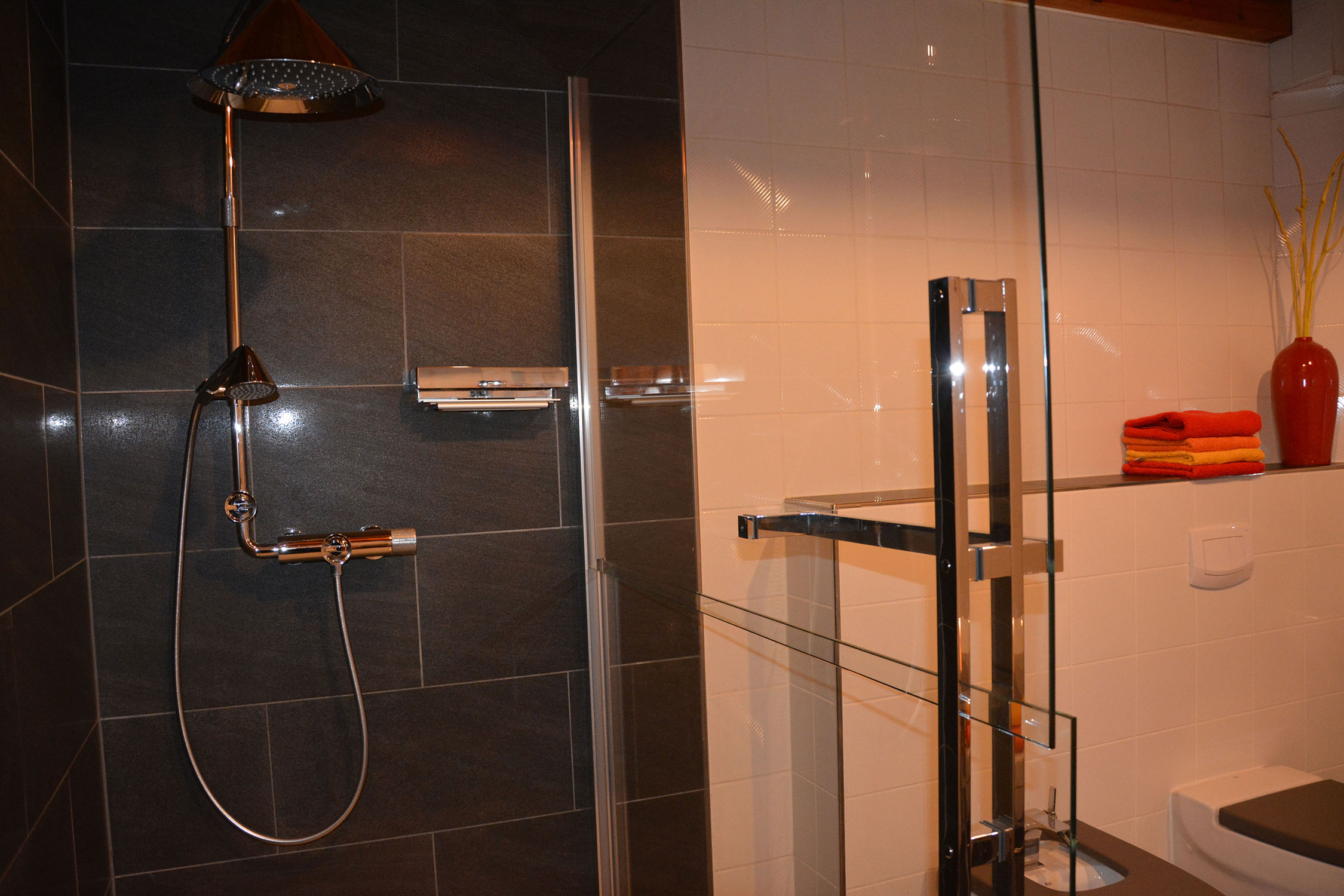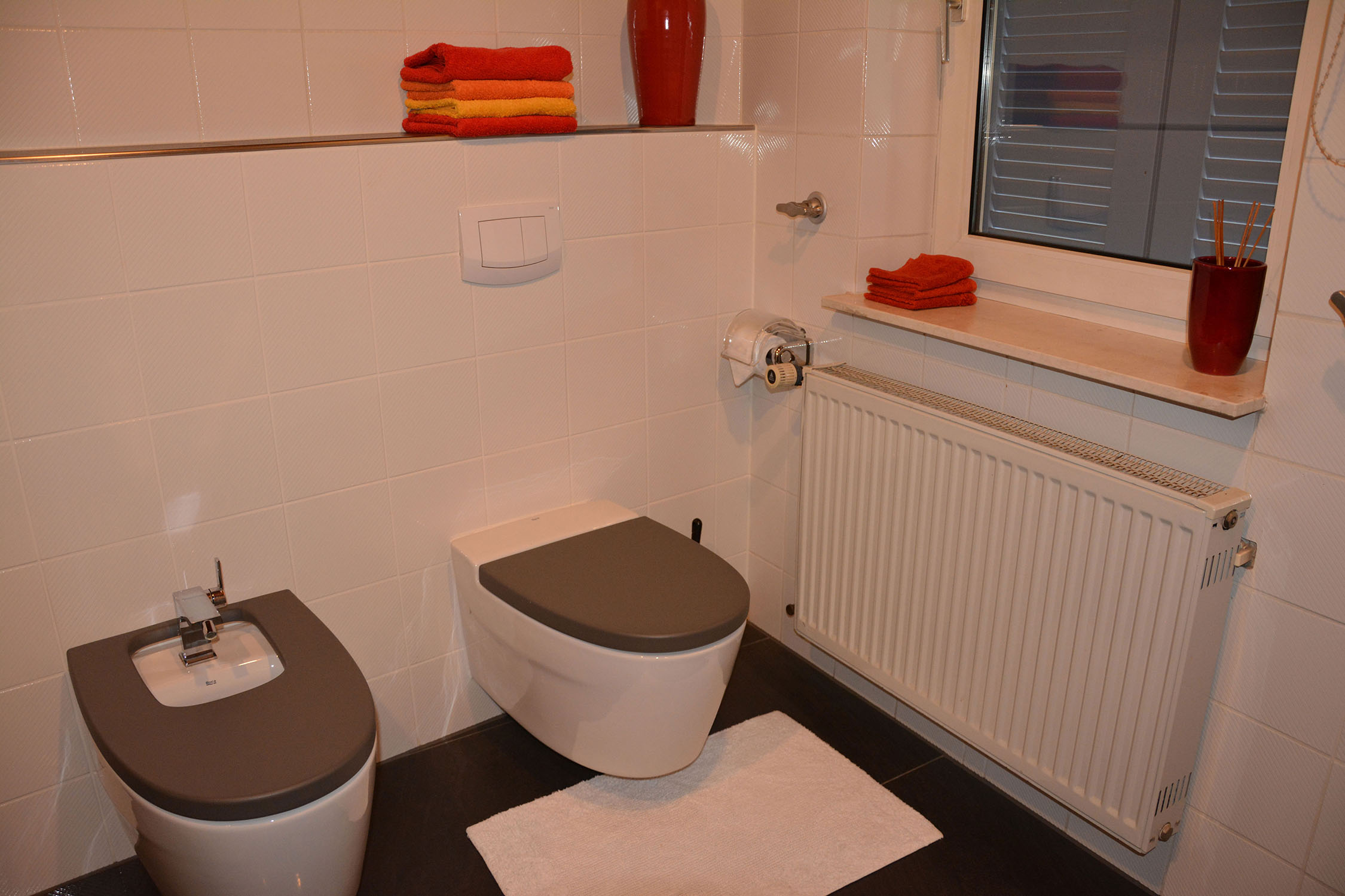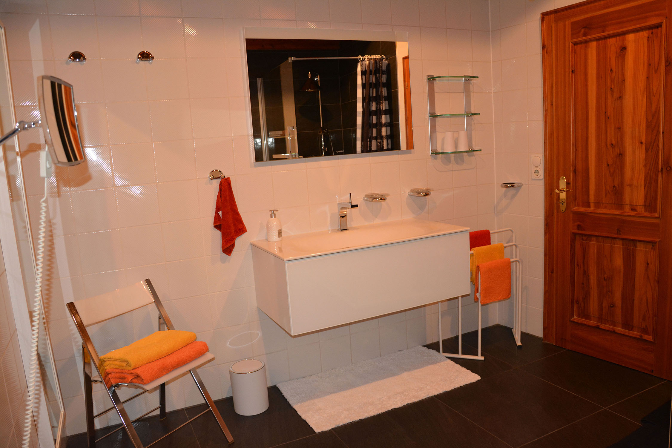 Das Haus hat ein großes Tageslichtbad mit geräumiger Regendusche und ein separates Gäste-WC.